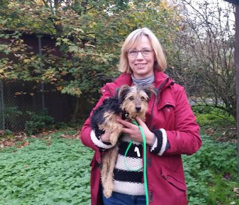 SUSIE – diese selbstbewusste Hundedame sucht ein ruhiges Zuhause bei Dackel- oder Terrier-Fans! SUSIE ist eine kleine Mischlings-Hündin, geboren 01/2013 und damit im besten Alter. Sie ist 29 cm klein. Sie sieht niedlich aus, aber… innerlich ist sie groß. Selbstbewusst. Hat ihren eigenen Kopf! Sie braucht einen Menschen, der ihren Eigensinn liebt, aber ihr nicht alles durchgehen lässt. Welche Rassen in SUSIE vertreten sind kann man wie so oft nur vermuten, aber den Charme und Witz eines Dackels oder Terriers hat sie auf jeden Fall. Auch vom Aussehen her kann man davon ausgehen dass solche Rassen mitgemischt haben, und wer sie kennt, weiß, dass sie umwerfend charmant sein können, aber auch „ihren eigenen Kopf“ haben. Was ja auch schön ist! Nur muss man halt ab und an sturer sein als sein Hund und sich gut durchsetzen können. Es gibt so viele Menschen, die Dackel oder Terrier lieben und auch mit ihnen zurecht kommen – da wird doch jemand dabei sein, der SUSIE ein neues Zuhause bieten kann? SUSIE schließt sich zärtlich an ihre Bezugsperson an, kuschelt gerne und liebt es, eng bei ihrem Menschen zu sein. Während ihre Pflegemama diesen Text schreibt, liegt sie auf deren Füßen und schläft. Diese Anhänglichkeit ist angenehm, bedeutet aber auch, dass man ihr von Anfang an klar machen muss, dass ein Mensch auch Dinge ohne seinen Hund erledigen will, und dieser dann auch mal alleine bleiben muss. Das war auf einer früheren Pflegestelle gut möglich und auch auf der jetzigen Pflegestelle klappt das recht gut, der neue Halter sollte diese Konsequenz auch haben und SUSIE nicht ZU sehr verwöhnen. Mehr als wenige Stunden am Tag sollte SUSIE aber nicht alleine bleiben müssen und auch das muss erstmal über einige Zeit trainiert werden. SUSIE kennt bereits das Zusammenleben mit Kindern, die Kinder im neuen Zuhause sollten schon älter sein. SUSIE sucht ein ruhiges Zuhause, denn sie fühlt sich mit Unruhe, Hektik und Lärm nicht wohl. Mit anderen Hunden versteht sie sich gut und Katzen hat sie auch schon kennengelernt und auch schon mit ihnen zusammen gelebt. Natürlich hängt das Gelingen eines Hund-Katze-Zusammenlebens auch immer von den jeweiligen Beteiligten ab. SUSIE fährt auf der Pflegestelle jeden Tag sehr gerne und gut im Auto mit. SUSIE sucht ein gemütliches Zuhause, möglichst ohne Treppen. Denn sie hat beidseits eine nach innen verschobene Kniescheibe. Damit kommt sie gut zurecht, aber die Spaziergänge können auch mal kürzer ausfallen und Sport ist gar nichts für sie.