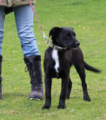 Mit anderen Hunden verträgt sie sich sehr gut. Ein bereits vorhandener souveräner Ersthund wäre gut für sie. Zu kleineren Kindern möchten wir sie nicht vermitteln, da wir denken, dass das für sie zu viel Stress ist und sie sich sehr unsicher zeigen wird. Zumindest bräuchte es dann Menschen mit viel Erfahrung mit unsicheren Hunden.