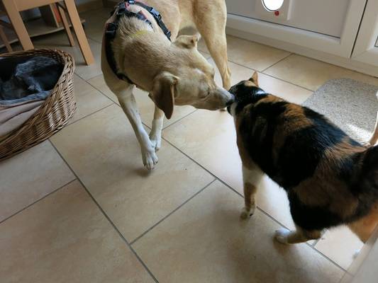 Apropos nachhause kommen: Terra bleibt problemlos und ruhig mit den Hunden der Pflegestelle auch mehrere Stunden alleine zuhause.