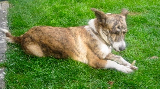 Aus der anfangs etwas moppeligen Hündin ist mittlerweile eine gertenschlanke und sportliche Begleiterin geworden, die Pflegefrauli und ihre Hundekumpels mit Freude bei ausgiebigen Läufchen durch die Natur begleitet und die Vorfreude darauf deutlich zeigt, wenn ihr Mensch die Leine vom Haken nimmt.