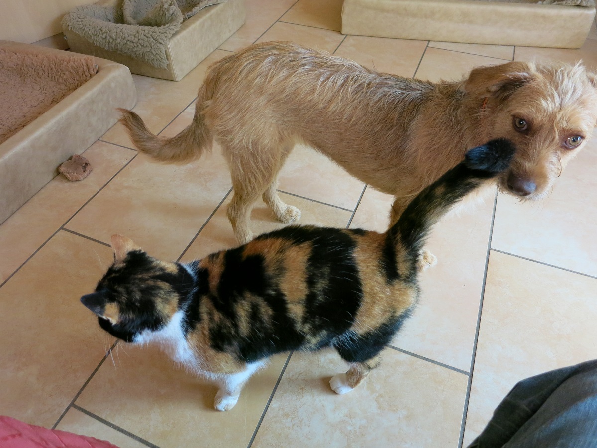 Katzen dürfen in ihrem neuen Zuhause ebenfalls leben - Raffa mag sie.