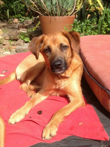 Terra ist im besten Alter (geboren 2008) und eine wunderhübsche ‚rotblonde‘ Mischlingsdame, mit den seidigsten Öhrchen der Welt.