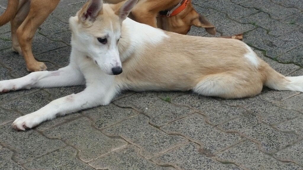 Magali ist 33cm große Mischlingshündin und wurde im Januar 2017 geboren. Magali ist eine supernette, kleine Hündin, die sich mit allem und jedem versteht. Sie mag ihre Artgenossen, sie mag Kinder, sie mag Katzen - sie mag einfach jeden.Altersgemäß ist sie verspielt. Sie geht schon gut an der Leine und ist auch, Dank ihrer unkomplizierten Art, für Hundeanfänger geeignet. Magali ist stets gut drauf und besticht durch ihre gute Laune. Wir werden in Bälde näher über sie berichten.