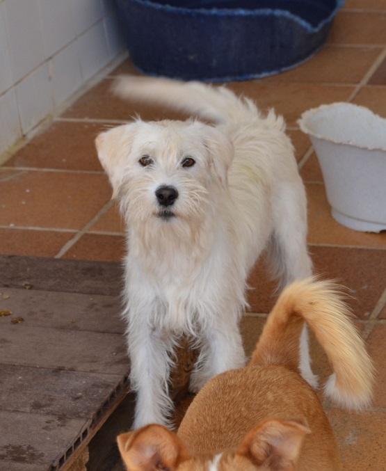 Hallo Leute, ich bin JUMPY!! Ich bin ein Mischling (aus welchen Rassen?? Von allem nur das Beste!), wiege 8 kg und bin 41 cm groß. Geboren bin ich am 01.05.2016 in Portugal. Leider wurde ich in dort in einem Tierheim abgegeben. So geht es vielen von uns Hunden – wir sind schon froh, wenn uns dieses Schicksal ereilt und nichts Schlimmeres passiert… nun war ich erstmal in Sicherheit, aber auf Dauer ist das Leben im Tierheim dann doch ein bisschen langweilig. Ich habe doch noch viel vor im Leben! Ich bin ein gute-Laune-Hund. Immer fröhlich und lustig und gut drauf. Ich laufe, renne und spiele gerne. Ob es ein Zuhause für mich gibt, wo ich was erleben kann? Tolle Hundefreunde kennenlernen, vielleicht Hundesport machen, auf jeden Fall aber lange Spaziergänge und Ausflüge – wandern, klettern, ich mache alles mit! Wer zeigt mir die Welt? Ich gehe bei jedem Wetter mit meinem Menschen raus – aber ganz ehrlich, Regen und Schnee finde ich nicht so toll. Aber wenn es was zu erleben gibt, muss man das schon in Kauf nehmen. Meine Pflegemama packt mich immer schön in ein warmes Hundemäntelchen, dann habe ich auch bei miesem Wetter Spaß und flitze mit meinen Freunden um die Wette. Zuhause bin ich meistens recht artig. Ich kann auch sehr brav in meinem Körbchen liegen und am liebsten knabbere ich dann Kaustängelchen, Rinderohren und solche Köstlichkeiten. Manchmal denke ich, ich bin im Paradies… so tolle Sachen gibt es hier! Ich würde gerne mit einem oder mehreren anderen Hunden zusammenleben, dann hätten wir immer Spaß zusammen und dann würde ich auch gut alleine bleiben. O.k…. ich würde auch als Einzelhund bei lieben Menschen wohnen, aber dann möchte ich gerne regelmäßig Hundefreunde treffen. Ich kann Euch nur nicht sagen, wie lange ich dann so ganz alleine zuhause bleiben würde. Das kenne ich noch nicht. Mit meinem Rudel zusammen ist es auf der Pflegestelle gar kein Problem. Ich fahre sehr gerne im Auto mit – da kommt man an interessante Orte und kann andere Hunde und nette Menschen treffen! Und danach kann man sich auf der Heimfahrt schön einkuscheln und von den Erlebnissen träumen. Auch wenn Ihr mal zum Tierarzt mit mir fahrt – da geh ich auch ganz gerne hin. Selbst wenns mal piekst – danach gibt’s ein Leckerchen und alles ist gut. Ich mag halt einfach alles und jeden! Ich habe schon kleinere Kinder kennenlernen dürfen und finde die gut, alle sind meine Freunde. Katzen habe ich in Portugal auch schon kennengelernt, und mit denen könnte ich auch gut zusammenleben. Natürlich bin ich wie alle hier kastriert, geimpft, gechipt und entwurmt. So, jetzt habe ich Euch so viel von mir erzählt – wer ruft jetzt an und möchte mich kennenlernen?? in freudiger Erwartung - Euer JUMPY