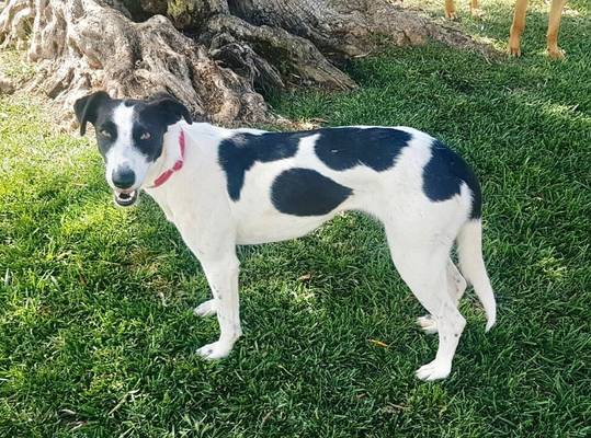 Thea ist eine sehr hübsche, freundliche und verspielte junge Hündin die so gerne ihre eigenen Menschen mit etwas Hundeerfahrung hätte. Auch wenn sie Anfangs schüchtern ist, siegt die Neugierde und sie taut innerhalb weniger Tage auf, bleibt aber ein bisschen misstrauisch was sich in ihrer eigenen Familie sicher legen wird.