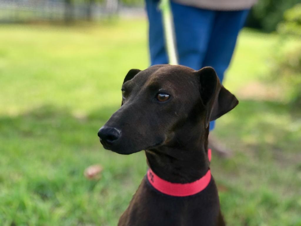 Malaysia ist eine zurückhaltende, kleine Hündin.