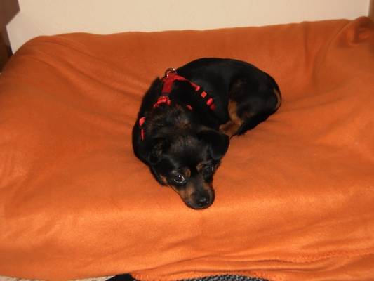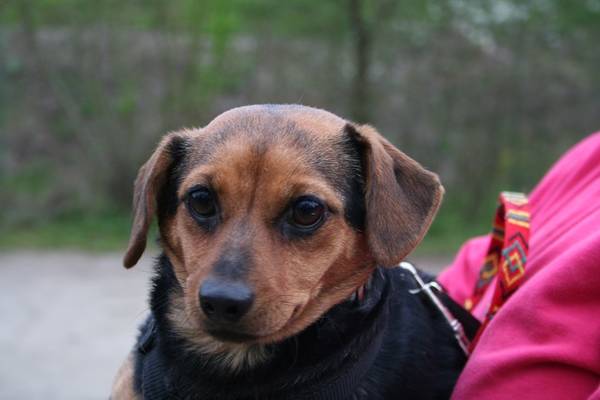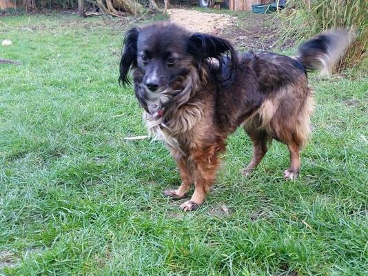 Vorsicht Kampfschmuser . Das trifft völlig auf die kleine Page zu. Page ist eine Mischlingshündin, geboren am 15.12.2011, 29 cm klein und wiegt 4,3 kg. Sie hat braun/schwarzes mittellanges weiches Fell mit schönem Behang an Beinen und Rute. Page ist ein Papillon-Mix, was ihre typischen Papillon-Öhrchen verraten. Ein weißer Brustfleck rundet ihre Schönheit ab. Ihre kleinen dunklen Äuglein sind stets auf ihr Pflegefrauchen gerichtet und in ihrem kleinen Kopf überlegt sie wie sie am besten und schnellsten wieder auf den Schoß des Menschen gelangt. Page liebt es zu schmusen, und das ausgiebig und lange. Sie verträgt sich gut mit anderen Hunden und auch mit Katzen und im Auto fährt sie ganz brav mit. Im Haus verhält sie sich ruhig und brav. Sie bleibt auch brav mit den anderen Hunden der Pflegefamilie zu Hause. Wer also auf der Suche nach einer treuen und anhänglichen Begleiterin ist, der ist hier bei Page genau richtig. Sie ist unkompliziert und einfach nur lieb. Page ist glücklich, wenn sie dabei sein darf. Man kann sie überall mit hin nehmen. Page wartet schon auf Ihre neue eigene Familie und freut sich auf den Kennenlerntermin.