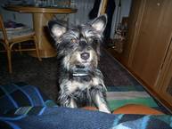Nigra ist am 11.11.2011 geboren und ist zurzeit 45cm groß. Ihr seidigweiches, silbernes Fell läßt darauf schließen, dass bei ihr ein Schnauzer mitgemischt hat. Sie ist ein fahrer Schatz, Fremden gegenüber anfangs etwas schüchtern, aber ihre Pflegefamilie liebt sie bereits über alles!