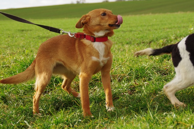 An der Leine läuft sie super und sie liebt es, Gassi zu gehen.