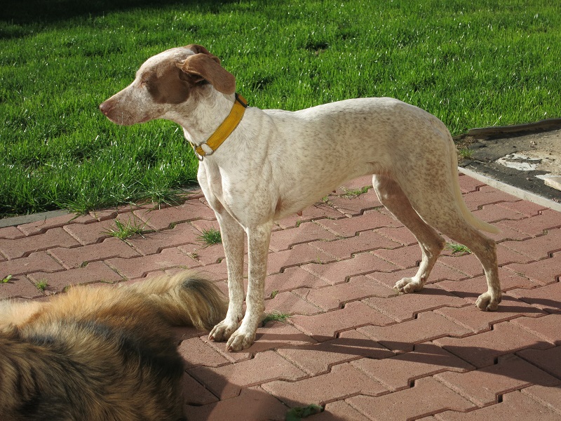Unsere BANANA ist ein Sonnenschein, geboren 03/2014 und 42 cm hoch. Wenn man BANANA kennenlernt, geht einem das Herz auf. Ihrem Charme kann kaum jemand widerstehen. Sie dürfte ein Podengo-Mix sein, und dieses liebenswerte Wesen ist typisch für diese Rasse, es sind so wundervolle Hunde, in die man sich einfach verlieben muss. BANANA wohnt auf einer Pflegestelle mit zahlreichen anderen Hunden zusammen. Sie hat auch schon Katzen und Kinder kennen gelernt und ist mit allem gut Freund.
