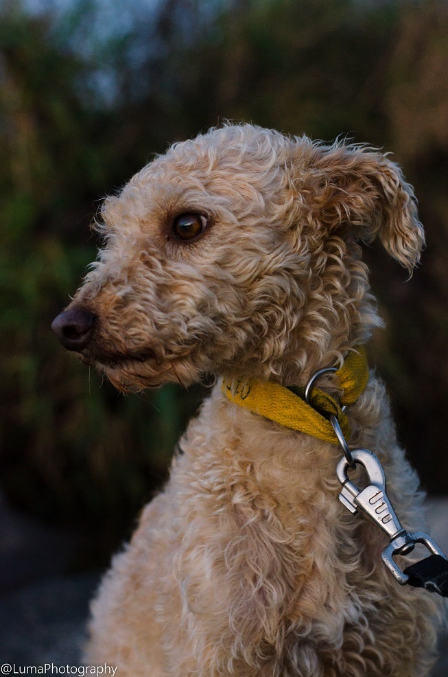 Poldi ist eine bezaubernde Pudel-Mix-Dame mit ca. 41cm und 11,5kg. Geboren ist sie etwa 03/2011. Sie wurde in sehr vernachlässigtem Zustand aufgegriffen, dass Fell lang und verfilzt. Nun wurde sie gebadet und geschoren und man sieht, welch Schönheit dabei heraus kam! Ihre schwarzen Locken bringen ihre schönen gold-braunen Augen so richtig zur Geltung. Und so lieb, wie sie mit diesen Augen schauen kann, ist sie auch. Sie ist nur nett und absolut unkompliziert, verträgt sich mit allem und jedem, geht freundlich auf jeden Menschen zu und freut sich über jede noch so kurze Streicheleinheit. Dazu ist sie auch stubenrein, kann (derzeit mit anderen Hunden) alleine bleiben, fährt gut im Auto mit, geht super an der Leine und ist katzenverträglich. Sicherlich ist diese verschmuste und verspielte Hündin auch gut für Hundeanfänger geeignet. Natürlich ist Poldi auch geimpft, gechipt, entwurmt und kastriert.