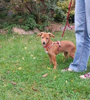 Pedro ist ein liebenswerter, kleiner Mischlingsrüde mit einer Schulterhöhe von ca. 35cm. Mit seinen 9Monaten (geb. 01/2012 in Ungarn) tänzelt er leichtfüßig und unbeschwert durchs Leben. Pedro ist ein lebensfroher und neugieriger Hundebub und auch wenn es in der Innenstadt, wo seine Pflegemama wohnt, viele komische Dinge gibt, kann ihn nur wenig davon erschrecken. Menschen findet Pedro alle spitze und mit anderen Hunden versteht er sich prima. Er ist sehr verspielt, egal ob mit seinem Menschen, einem Plüschtier, Ball oder anderen Hunden, da ist ihm keiner zu groß! Pedro würde sich auch darüber freuen zu einem größeren Hund als Zweithund vermittelt zu werden, er kann aber auch gut als Einzelhund gehalten werden. Pedro ist altersgemäß noch sehr verspielt und hat er sie erst mal erobert, trägt er stolz seine "Beute" durch die Gegend und versucht andere zum Mitspielen zu animieren. Pedro ist ein cleveres, kleines Kerlchen, er ist aufmerksam und lernt schnell Neues. Für Leckerchen tut Pedro alles und in der kurzen Zeit, die er jetzt auf seiner Pflegestelle ist, hat er bereits Sitz und Platz gelernt. Pedro läuft sehr gut an der Leine und selbst an der langen Schleppleine kommt er einem schon freudig entgegen geflitzt, wenn er seinen Namen hört. Pedro ist ein kleiner Prinz und liebt es Aufmerksamkeit zu bekommen, gestreichelt zu werden oder einfach nur neben einem zu liegen und zu dösen. In der Wohnung verhält sich Pedro ruhig und angenehm. Pedro kann auch schon ein paar Stunden alleine bleiben ohne etwas kaputt zu machen.