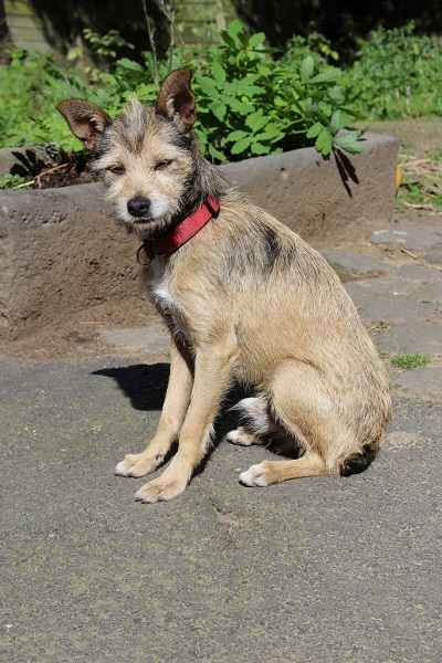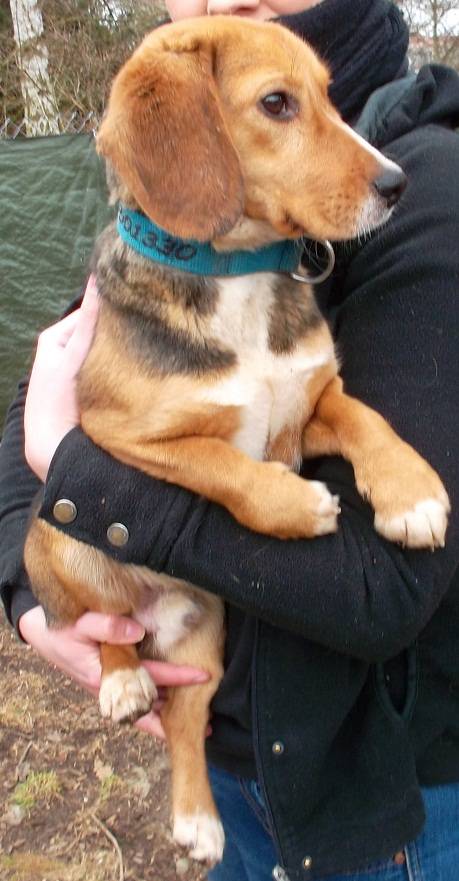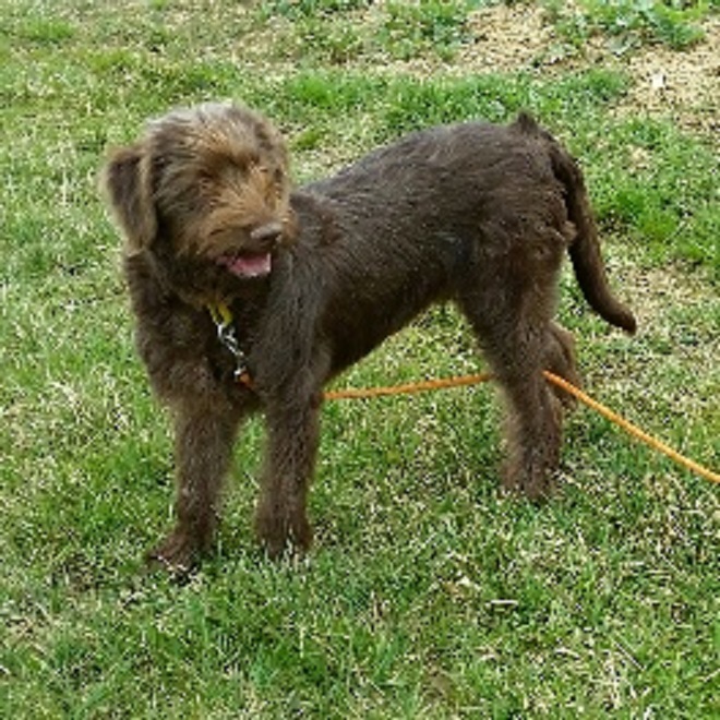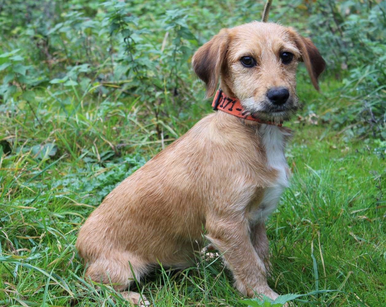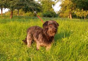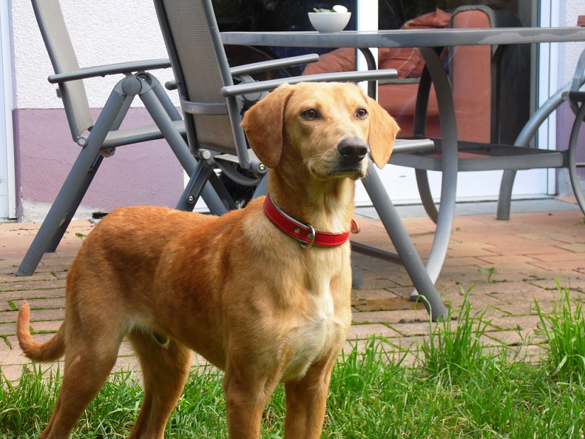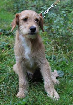 Er ist seinem Aussehen nach ein Mischling der Rasse „Basset fauve de Bretagne“, geb. 08/2011 und ca. 35 cm hoch. In Ungarn wurde er auf der Straße gefunden – woher er kam und wie er vorher lebte, ist nicht bekannt. In der dortigen Tierschutz-Station zeigte er sich sofort als netter, zurückhaltender Hund, und war stets freundlich mit allen Menschen, Hunden und Katzen. Hier in Deutschland lebt er derzeit ohne weitere Tiere als Pflegehund bei einer jungen Frau in einer Stadtwohnung. Er zeigt sich weiterhin als sehr freundlicher, verschmuster junger Bursche, der mit seinem Charme jeden um die Pfote wickelt. Inzwischen ist er sehr aufgeschlossen, freut sich über jeden Menschen, den er trifft, er ist lebhaft, verspielt und zeigt seine Lebensfreude mitunter auch recht stürmisch! Das junge Energiebündelchen braucht ausreichend Auslauf und Beschäftigung, er ist gerne mit seinem Menschen draußen unterwegs und geht sehr gerne schwimmen. Drinnen klappt alles soweit prima, er ist inzwischen stubenrein und lernt gerade das Alleinebleiben,zwei Stunden kann er das schon sehr gut.