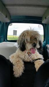 An der Leine geht er gut - Auto fahren stellt für ihn kein Problem dar!