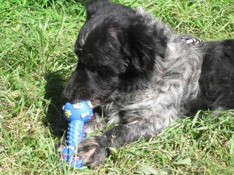 Welpentypisch ist er ein sehr verspielter Bursche.