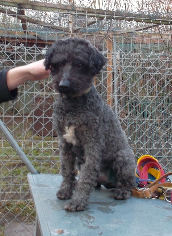 Cristo, unser Spaßkeks, ist ein Puli (-Mix) der dringend seinen Frisörtermin am 09.02.12 wahrnehmen muss. Das Mix haben wir in Klammer gesetzt da er auch reinrassig sein könnte. Cristo ist 09/2010 geboren und hat eine Schulterhöhe von ca. 45,0 cm. Auf jeden Fall werden Bilder nach dem Frisörbesuch folgen. Cristo wurde in der Nähe einer Autobahn gefunden und wir gehen davon aus, dass er auch dort ausgesetzt wurde. Er lief ganz verwirrt in Richtung Fahrbahn aber Gott sei Dank wurde er noch rechtzeitig eingefangen. Sein Fell ist in einem sehr schlimmen Zustand das da dringend was gemacht werden muss. Pflegefrauchen Angelika wird ihm die Pfote dabei halten. Cristo ist ein sehr lieber und freundlicher Kerl der auch mit den anderen Hunden in der Pflegestelle gut klar kommt. Auch mit Menschen hat Cristo keinerlei Probleme. Er ist kastriert, geimpft, gechipt und entwurmt. Jetzt fehlt ihm zum großen Glück nur noch ein eigenes Zuhause.