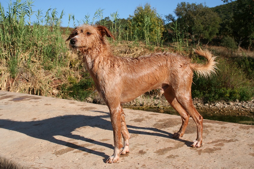 Leider musste mir das linke hintere Bein abgenommen werden. Und das kam so: In Portugal, wo ich herkomme, war ich in eine Falle geraten und hatte höllische Schmerzen. Es kam keiner vorbei, der mir helfen konnte. Ich hatte nur zwei Möglichkeiten: entweder bleibt mein Fuß in der Falle, die aber an einem Baum angekettet war, so dass ich nicht weg konnte und elend verhungert wäre - oder ich helfe mir selbst, aus dieser Falle heraus zu kommen. Ich habe mich für das Leben entschieden und habe vor lauter Verzweiflung meine Pfote, die von der verrosteten Falle schon total entzündet war, abgefressen und konnte mich somit befreien. Ich lief von diesem schrecklichen Ort soweit weg wie ich nur konnte. Mein Bein schmerzte sehr, denn die Entzündung ging jetzt weiter ins Bein. Ich wurde irgendwann von lieben Menschen aufgesammelt. Weglaufen konnte ich nicht mehr, dazu fehlte mir die Kraft. Diese Menschen haben mich ins Tierheim gebracht und dort wurde mir schnell geholfen. Die Entzündung im Bein war aber schon soweit fortgeschritten, dass keine Heilung mehr möglich war. Das Bein musste amputiert werden. Für mich war es die beste Lösung - und ihr glaubt gar nicht, wie schnell ich damit laufen kann! Spielen mit anderen Hunden ist überhaupt kein Problem. Ich habe auch nur eine Schulterhöhe von ca. 45cm und kann mein Gewicht prima auf drei Beinen halten. Ich hoffe, es gibt ganz liebe Menschen die mich auch mit drei Beinen mögen und mir ein richtiges Zuhause geben. Das wäre mein größtes Glück!