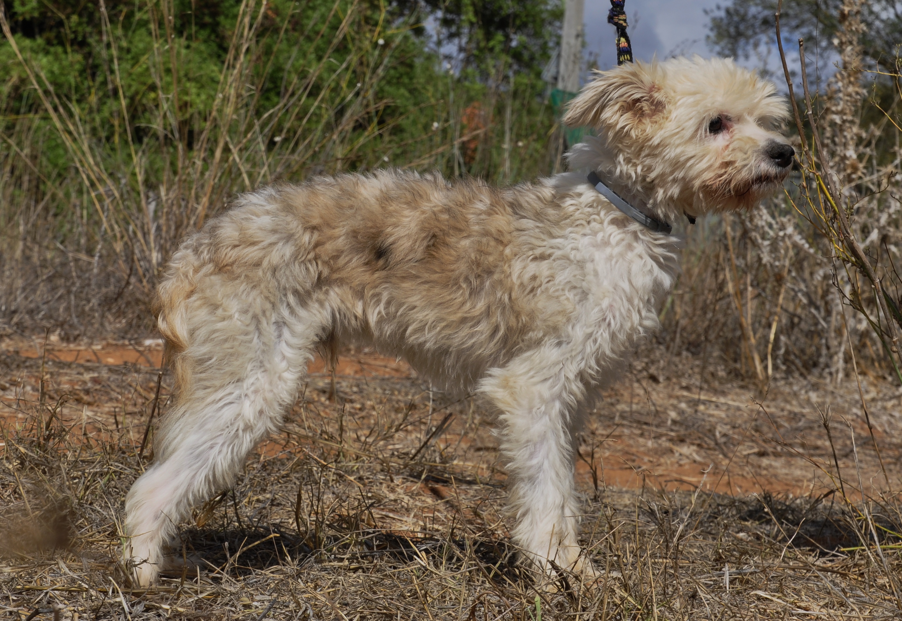 Als ich noch jünger war, habe ich mir den linken Oberschenkel gebrochen und da sich in Portugal niemand um mich gekümmert hat, ist das ganze wieder schief zusammen gewachsen. Dadurch ist mein linkes Hinterbein ein wenig kürzer geraten als das rechte und hat mein Gangbild etwas verändert. Doch das stört mich überhaupt nicht, da ich keine Schmerzen habe und alles tun kann, was andere Hunde auch tun. Was mir nun zu meinen Glück noch fehlt, ist ein liebvolles Zuhause auf lebenszeit mit verantwortungsvollem Kuschelpersonal, bei dem ich endlich zur Ruhe komme und das mich nimmt wie ich bin.