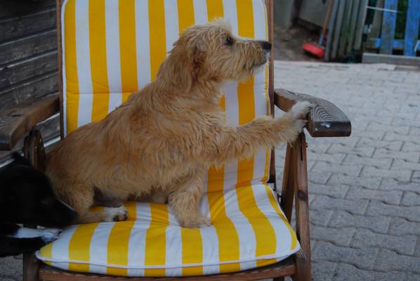 Joschi ist ein typischer Terrier, er braucht also wirklich Terrier erfahrene Menschen. Vom Pudel jat er leider nur die Locken mitbekommen.