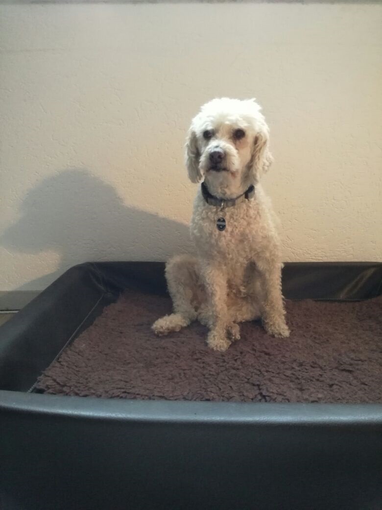 Frodo ist ein Pudel-Mischling, wurde 2008 geboren, ist 42 cm groß und wiegt 11 kg