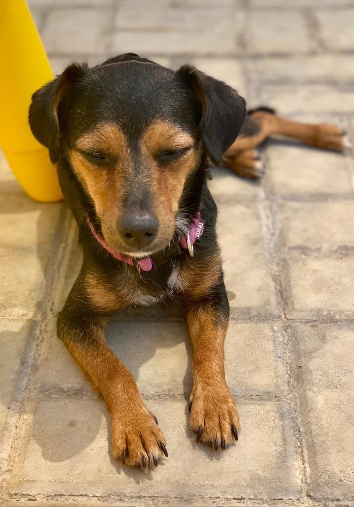 Malaysia wurde im Tierheim Loule abgegeben. Ihre beiden Kniescheiben waren locker und wurden mit entsprechendem