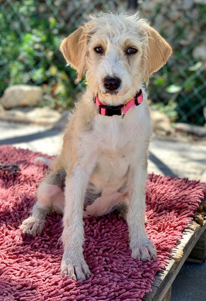 Der kleine Sonnenschein wurde am 21.04.2018 geboren und ist 46cm groß. Manani verträgt sich mit allen: Ob Hund, ob Katze - hier macht sie keinen Unterschied. Kinder mag die Kleine gerne. Manani eine offene und an allem interessierte Hündin.