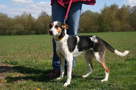 Dies ist unsere liebe und verschmuste DSH-Mix Hünidin Foxy. Sie ist am 10.06.2010 geboren und 47,0 cm. Foxy wohnt bei einem Paar das eine Hundetagesstätte betreut. Dort zeigt sie sich in der Hundegruppe neuer Hunde gegenüber anfangs eher skeptisch, nach kurzer Zeit duldet sie die anderen Hunde und mit ausgewählten speilt sie sogar.