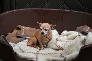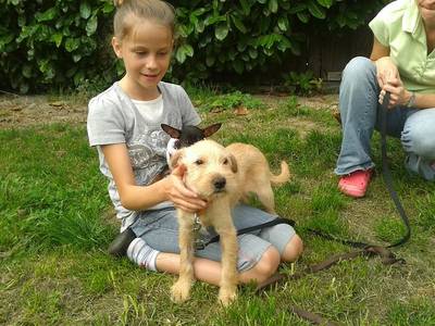 Balsa, geboren am 01.08.2008, ist eine schüchtern, ca. 30 cm kleine Hündin mit großen Ohren und hübschen Rehaugen, die leider von ihrem Frauchen weggegeben wurde, da diese einen neuen Freund hat, der sich nicht mit Balsa anfreunden wollte. Fremden gegenüber ist Balsa auch erstmal vorsichtig, aber mit etwas Ruhe und Geduld fasst sie schnell Vertrauen, man darf sie nur nicht bedrängen. Selbst wenn sich die kleine Maus bedrängt fühlt, wird sie allerdings nie agressiv, sondern versucht lediglich der Situation zu entziehen. Daher mag sie es z.B. nicht, wenn man sich über sie beugt (was eignetlich kein Hund mag) oder sie hochnehmen will, daran wird aber fleißig gearbeitet mit bereits großen Fortschritten. In der Wohnung sind ihr generell solche Situationen unbehaglicher als im Freien. Beim gassi gehen zeigt sie sich jeden Tag mutiger, obwohl ihr die Innenstadt und Zugfahren eher suspekt sind, folgt sie ihrer Bezugsperson anstandslos. Auch läßt sie sich in unsicheren Situationen noch gut über Futter "manipulieren" und ist darüber gut zu erziehen. An der Leine läuft sie bereits super mit. In der Wohnung ist sie ein absoluter Schatz! Verschmust, unauffällig, macht nichts kaputt, bleibt alleine... Was will man da mehr? Auch Autofahren mag sie gerne und hundeverträglich ist sie. Anderen Hunden gegenüber zeigt sie sich als freundlich und eher unterwürfig. Ein Zweithund, an dem sie sich orientieren kann, wäre bestimmt toll, ist aber kein Muss. Wer gibt dieser tollen Maus ein neues Zuhause, aus dem sie hoffentlich nie mehr so einfach abgeschoben wird? Natürlich ist Balsa kastriert, geimpft, gechipt und entwurmt.