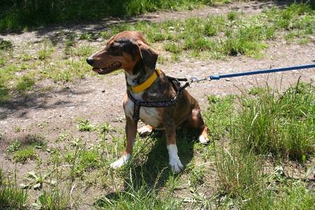Das ist unsere kleine, tolle Bracke-Mix Hündin Toffy. Sie hat eine recht kurze Rute (ca.12cm) aber das Ding kann wedeln das glauben Sie nicht. Sie ist sooo lieb und toll das man sie einfach nur gern haben muss. Sie ist absolut verschmust und sehr liebenswert. Sie versteht sich bestens mit anderen Hunden und kann mit anderen Hunden auch schon alleine bleiben. Geboren ist unser kleine Zuckerschnute am 15.06.2011 und hat eine Schulterhöhe von ca.35,0 cm. Sie ist kastriert, geimpft, gechipt und entwurmt.