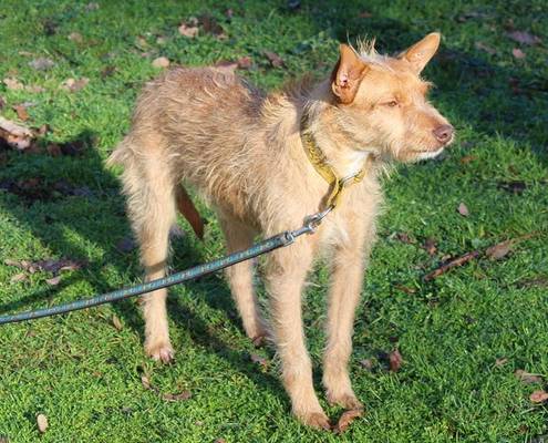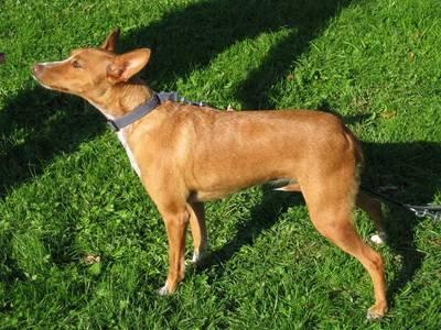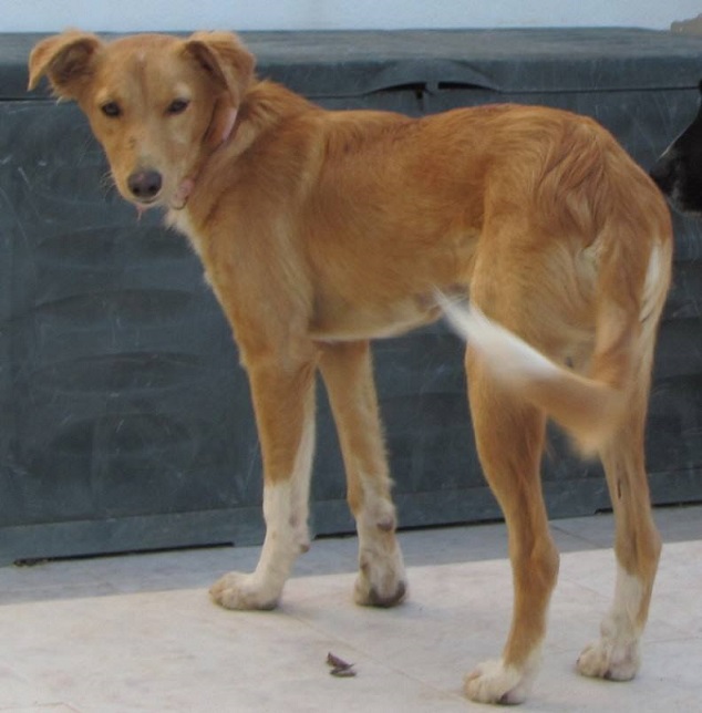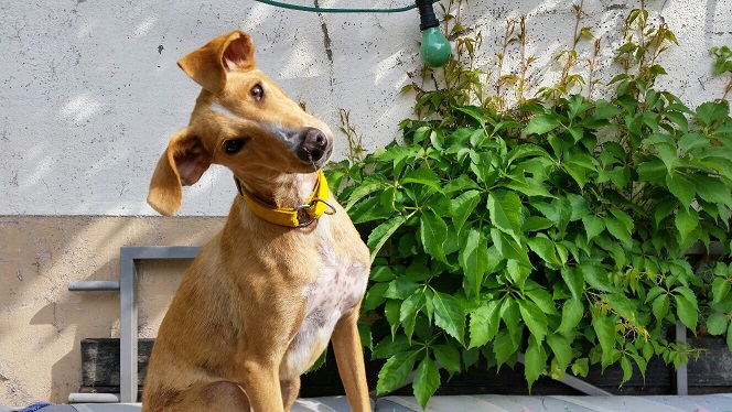 Unsere BANANA ist ein Sonnenschein, geboren 03/2014 und 42 cm hoch. Wenn man BANANA kennenlernt, geht einem das Herz auf. Ihrem Charme kann kaum jemand widerstehen. Sie dürfte ein Podengo-Mix sein, und dieses liebenswerte Wesen ist typisch für diese Rasse, es sind so wundervolle Hunde, in die man sich einfach verlieben muss. BANANA wohnt auf einer Pflegestelle mit zahlreichen anderen Hunden zusammen. Sie hat auch schon Katzen und Kinder kennen gelernt und ist mit allem gut Freund.