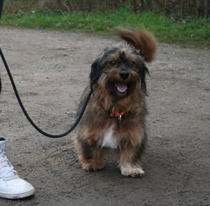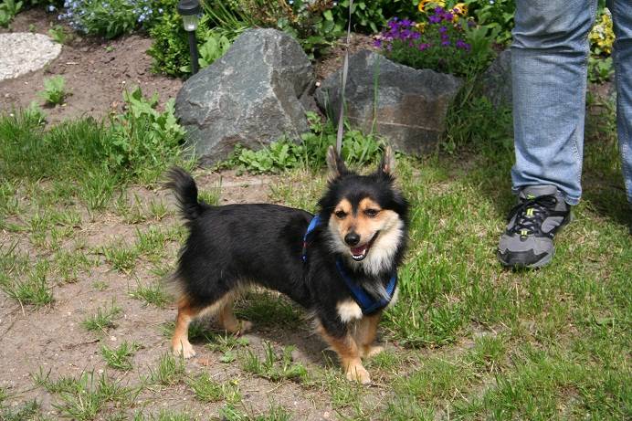 Vorsicht Kampfschmuser . Das trifft völlig auf die kleine Page zu. Page ist eine Mischlingshündin, geboren am 15.12.2011, 29 cm klein und wiegt 4,3 kg. Sie hat braun/schwarzes mittellanges weiches Fell mit schönem Behang an Beinen und Rute. Page ist ein Papillon-Mix, was ihre typischen Papillon-Öhrchen verraten. Ein weißer Brustfleck rundet ihre Schönheit ab. Ihre kleinen dunklen Äuglein sind stets auf ihr Pflegefrauchen gerichtet und in ihrem kleinen Kopf überlegt sie wie sie am besten und schnellsten wieder auf den Schoß des Menschen gelangt. Page liebt es zu schmusen, und das ausgiebig und lange. Sie verträgt sich gut mit anderen Hunden und auch mit Katzen und im Auto fährt sie ganz brav mit. Im Haus verhält sie sich ruhig und brav. Sie bleibt auch brav mit den anderen Hunden der Pflegefamilie zu Hause. Wer also auf der Suche nach einer treuen und anhänglichen Begleiterin ist, der ist hier bei Page genau richtig. Sie ist unkompliziert und einfach nur lieb. Page ist glücklich, wenn sie dabei sein darf. Man kann sie überall mit hin nehmen. Page wartet schon auf Ihre neue eigene Familie und freut sich auf den Kennenlerntermin.