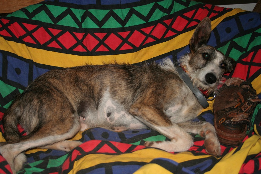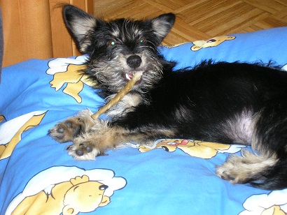 Selbst für kürzere Zeit ohne andere Hunde alleine bleiben kann Tamira schon. Sie jammert nicht dabei und macht auch nichts kaputt.