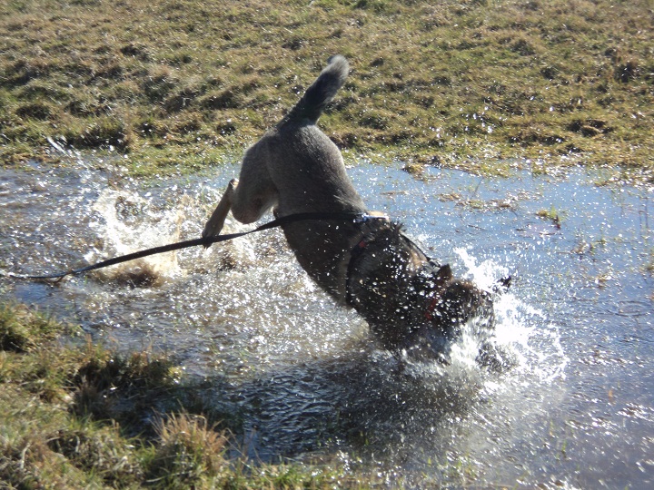 Alleine ist – bisher zusammen mit anderen Hunden – auch kein Problem.